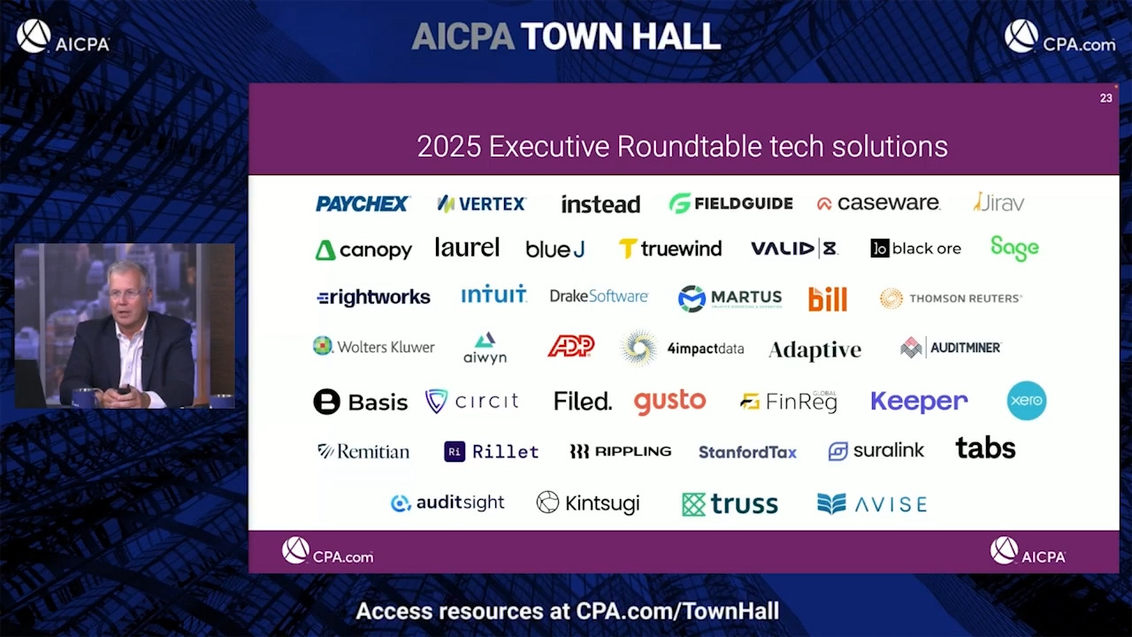 Expert guidance and tools to help you grow your practice CPA.com Resources Use the filters to select complimentary content that will help you grow your expertise in the practice area and services that matter most to you. LOADING... No Audit & Assurance-Digital CPA-Practice management-Strategy-Talent-TechnologyClient Advisory Services-Bill pay-Digital CPA-Financial planning & analysis-Financing advisory-Human resources advisory-Practice management-Spend & expense management-Strategy-Talent-TechnologyFirm Management-Branding-Digital CPA-Human capital management-Strategy-Talent-Technology-Web domainsInnovation-Artificial intelligence-Blockchain & digital assets-Digital CPA-ESG-Profession insights-Technology trendsTax-Digital CPA-Personal financial planning-Practice management-Sales & use tax-Strategy-Talent-Tax Research AI-TechnologyCPEContent Type-Blog articles-Conferences-eBooks-Guides-Infographics-Live news broadcasts-Podcasts-Product demos-Reports-Success stories-Toolkits-Videos-Webinars--Upcoming webinars--On-demand webinars-Whitepapers Content Type-Blog articles-Conferences-eBooks-Guides-Infographics-Live news broadcasts-Podcasts-Product demos-Reports-Success stories-Toolkits-Videos-Webinars--Upcoming webinars--On-demand webinars-Whitepapers Apply December 17 Automation Spotlight Join us for three webinars exploring how automation technology enables you to bring more value to your clients. Future-Ready Firms: Insights... Read more Client Advisory Services, Bill pay, Spend & expense management, CPE, Webinars, Upcoming webinars Paychex Partner Brochure Learn more about our Paychex Partner Program by downloading our brochure. Read more Client Advisory Services, Human resources advisory, Firm Management, Human capital management, Whitepapers November 18 Content That Connects: WOW Prospects and Clients... 95% of firm clients say that they are more likely to engage with a firm’s website and social posts when content is higher-level, fun, and... Read more Firm Management, Branding, Web domains, CPE, Webinars, Upcoming webinars 5 minutes Insights from CPA.com/AICPA's 2025 Executive Roundtable During a recent AICPA Town Hall, CPA.com CEO Erik Asgeirsson, AICPA CEO Mark Koziel and AICPA VP of firm services Lisa Simpson shared top... Read more Innovation, Profession insights, Videos 4 minute read AI in action: Key takeaways from the CPA.com and AICPA... During a recent AICPA Town Hall, CPA.com CEO Erik Asgeirsson, AICPA CEO Mark Koziel and AICPA VP of firm services Lisa Simpson share top... Read more Innovation, Profession insights, Blog articles Navigating the talent crunch: The 4-step guide for... The accounting and advisory profession is facing one of its biggest challenges yet — the ongoing talent crunch. Firms everywhere are... Read more Human resources advisory, Whitepapers First impressions, lasting impact: Why onboarding is... In today’s fast-paced advisory landscape, employee onboarding is no longer a formality — it’s a strategic advantage. For Client Advisory... Read more Human resources advisory, eBooks, Whitepapers 4 minute read Are your financial operations services leaving clients... Ever had your credit card company call to authorize your recent purchase of two business-class airline tickets to an exotic destination –... Read more Client Advisory Services, Bill pay, Spend & expense management, Technology, Blog articles Powering Manufacturing Tax Compliance: A Smarter Path... Whether advising manufacturing clients or managing tax compliance from within, accounting professionals face the same challenge: navigating... Read more Tax, Sales & use tax, Whitepapers 1 hour Scale Smarter: Integrate Financial Operations for... Turning data into actionable insight across clients doesn't take data analysts, engineers, and architects. In this webinar, CPA.com's Kim... Read more Client Advisory Services, Bill pay, Webinars, On-demand webinars 1 hour Make Sense of Your CAS Data: Creating Know-how From... Data is the key to unlocking smarter services, streamlined workflows, and scalable growth in your CAS practice. But turning raw numbers into... Read more Client Advisory Services, Bill pay, Webinars, On-demand webinars November 13, 2025 Conquering Manufacturing Tax: Real-World Lessons and AI... Manufacturers face one of the most complex indirect tax environments in the country—layered exemptions, shifting state rules, aggressive... Read more Tax, Sales & use tax, CPE, Webinars, Upcoming webinars Pagination Current page 1 Page 2 Page 3 Page 4 Page 5 Page 6 Page 7 Page 8 Page 9 … Next page Next › Last page Last »